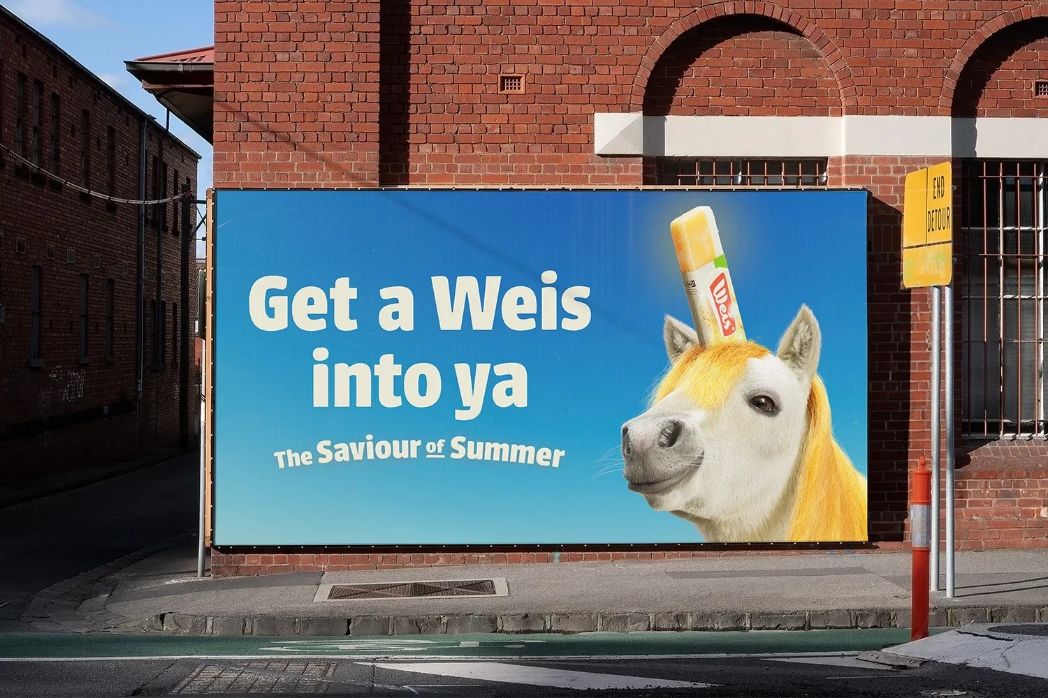 Thankfully the Weis-A-Corn is here, a slightly disgruntled, rather short unicorn with an ice cold delicious Weis bar as a horn.